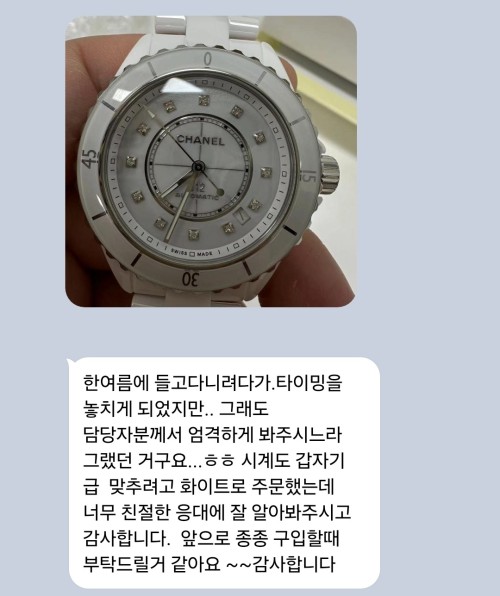 한여름에 들고다니려다가.타이밍을 놓치게 되었지만.. 그래도 담당자분께서 엄격하게 봐주시느라 그랬던 거구요...ㅎㅎ 시계도 갑자기 급 맞추려고 화이트로 주문했는데 너무 친절한 응대에 잘 알아봐주시고 감사합니다. 앞으로 종종 구입할때 부탁드릴거 같아요 ~~감사합니다